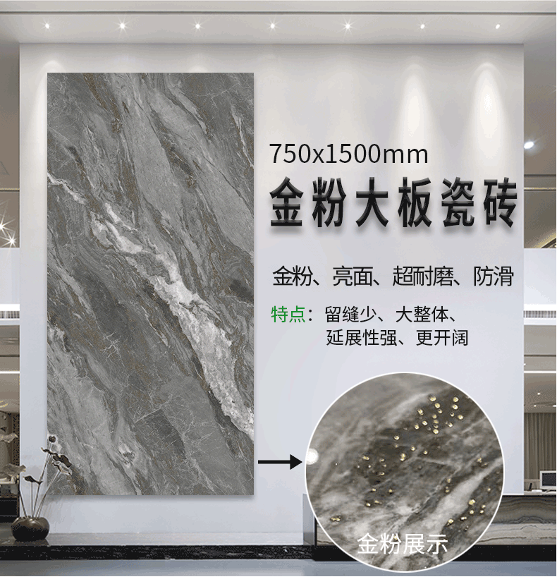 金線金粉 【產品介紹】航天級激光鍍金工藝,鉆石雕刻技術,高溫慢燒,釉層不吸污吸水率低,真空鍍金燒成后再進行真空電鍍工藝,平整如鏡面,精拋細磨,磚面平整光滑細膩光澤度、亮度、硬度較高。立體紋理,釉下彩工藝,三次淋釉增加磚面的立體感。