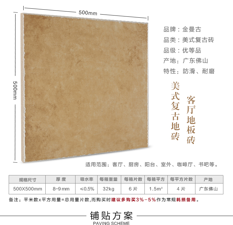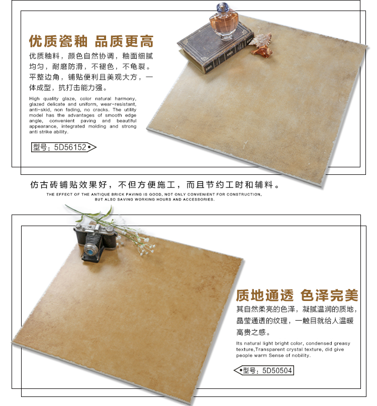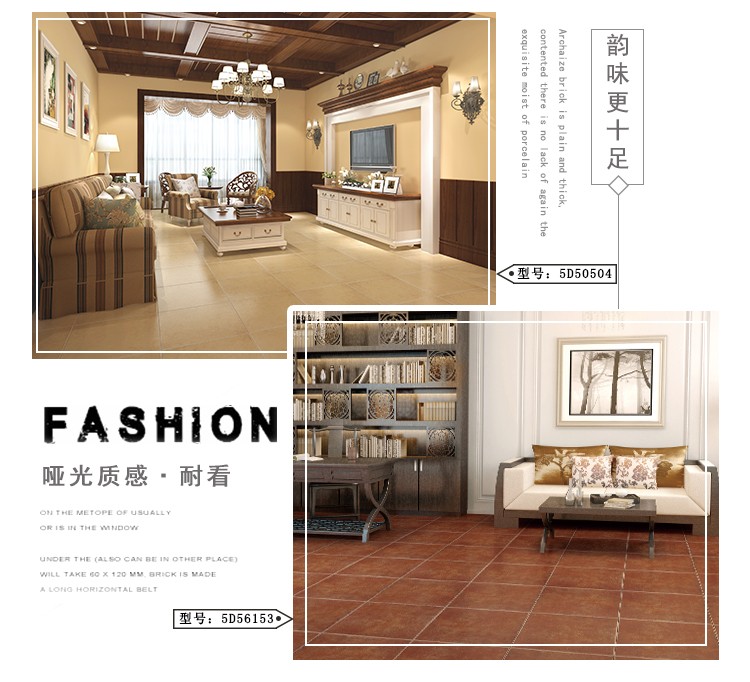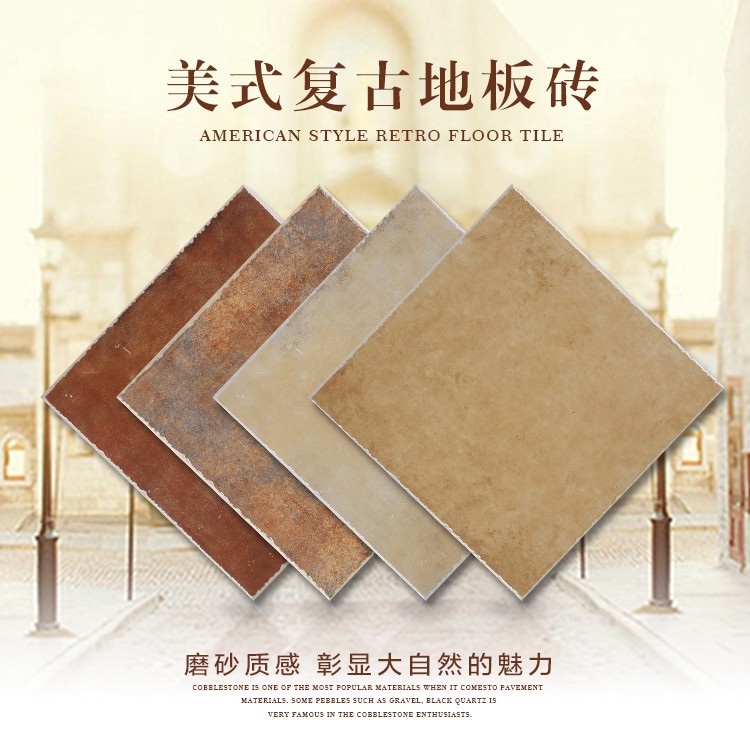 金曼古仿古地磚,采用國際先進的超大型壓機自動成型,經世界一流的滾筒印花和高溫煅燒而成,通過仿石、仿巖、仿木、仿布、仿金屬等多種表現方式,產品花色圖案新穎時尚,領先國際潮流,具有超耐磨、防滑、防污等高性能指標。