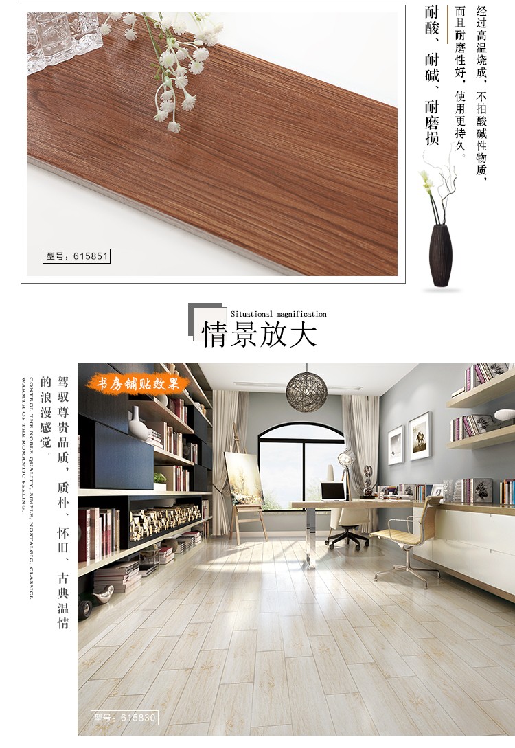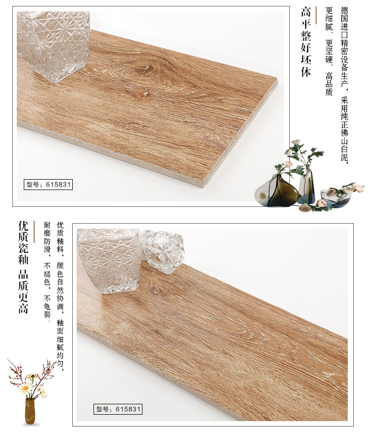 金曼古木紋磚,是一種表面呈現木紋裝飾圖案的環保建材.紋路逼真、自然樸實、沒有木地板褪色、不耐磨等缺點;曼古陶瓷木紋磚系列線條明快,圖案清晰為特色。本身具有阻燃,不腐蝕的特點,綠色、環保型建材;產品使用壽命長,耐磨,無需像木制產品那樣周期性地打蠟保養等.