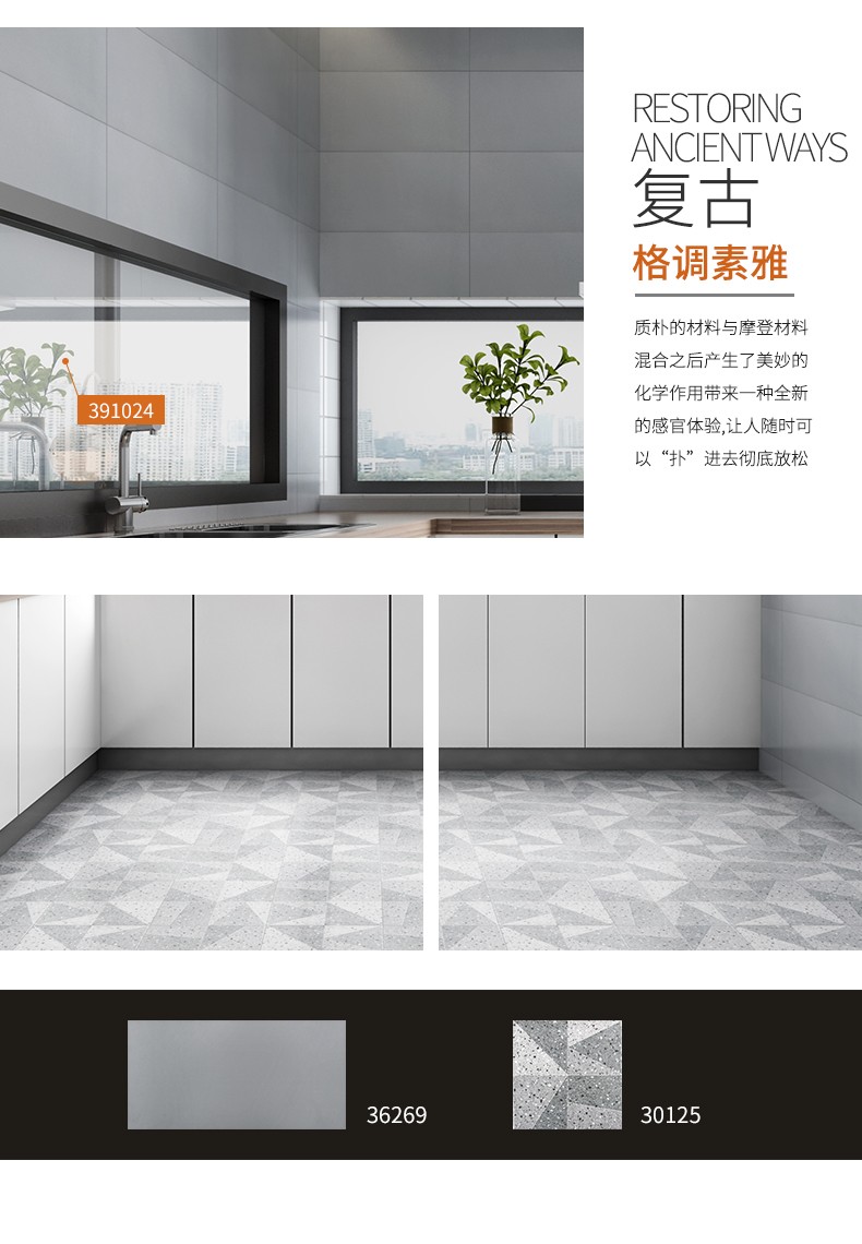 金曼古墻地磚,適用于洗手間、廚房、室外陽臺的立面裝飾,是保護墻面免遭水濺的有效途徑。它們不僅用于墻面,用在門窗的邊緣裝飾上,也是一種有趣的裝飾元素。用于踢腳線處的裝飾墻磚,既美觀又保護墻基不易被鞋或桌椅凳腳弄臟。