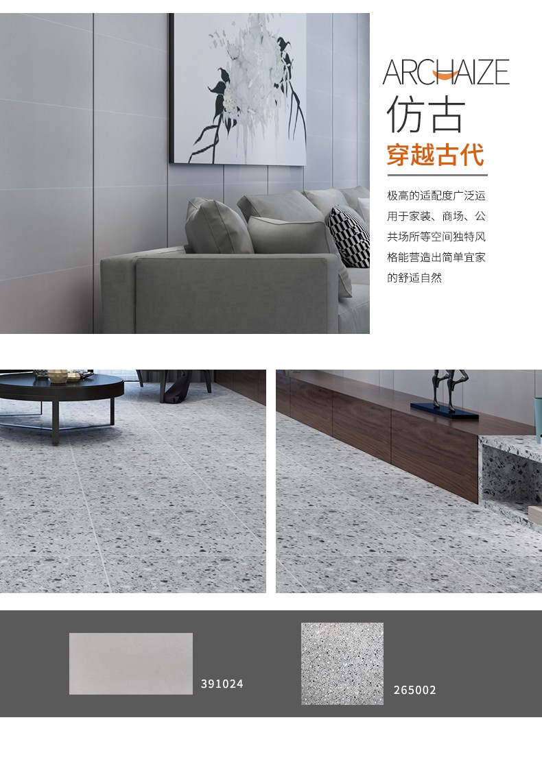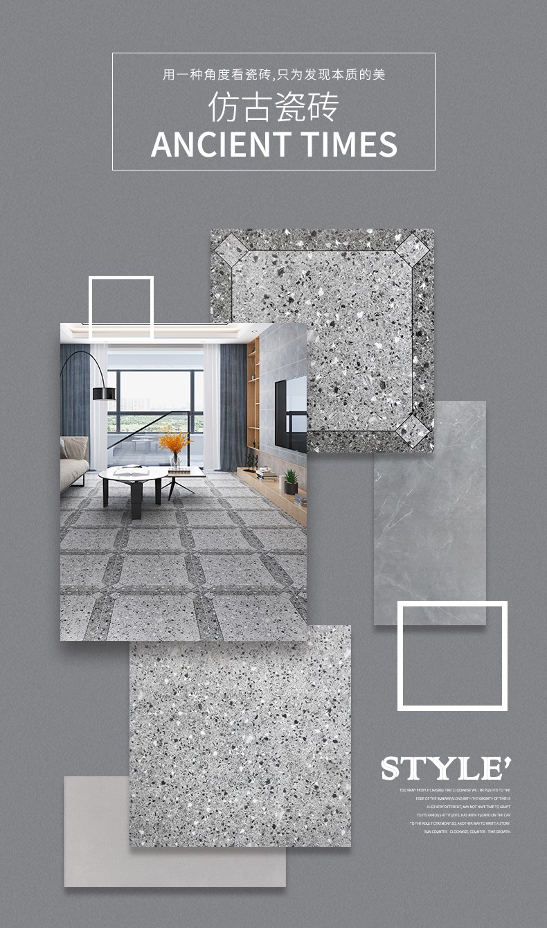 金曼古仿古地磚,采用國際先進的超大型壓機自動成型,經世界一流的滾筒印花和高溫煅燒而成,通過仿石、仿巖、仿木、仿布、仿金屬等多種表現方式,產品花色圖案新穎時尚,領先國際潮流,具有超耐磨、防滑、防污等高性能指標。