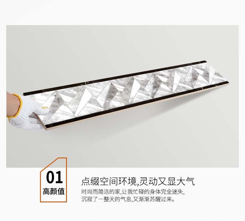 金曼古波導線20年造磚工藝,工藝不斷升級,打磨技術干凈利落,易鋪貼,效果統(tǒng)一平整。