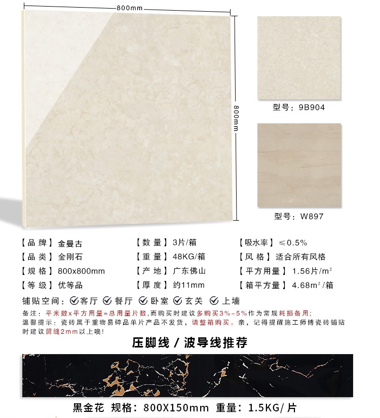 金曼古瓷磚廠家特價金剛石因高品質而得名,是一款極具天然石材效果和微晶石質感的仿石材瓷磚,它不但在價格、環保、耐用和清潔上極具優勢,在質感、規格、花色、重量等指標上,金剛石都遠遠勝于石材、拋光磚。相比其他種類的產品,它最大的特點可以用“高亮度、高耐磨、高平整、高逼真、高清晰、高環保”。