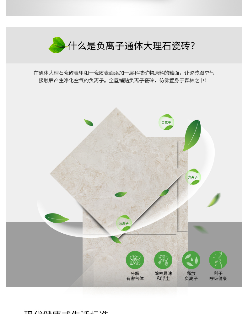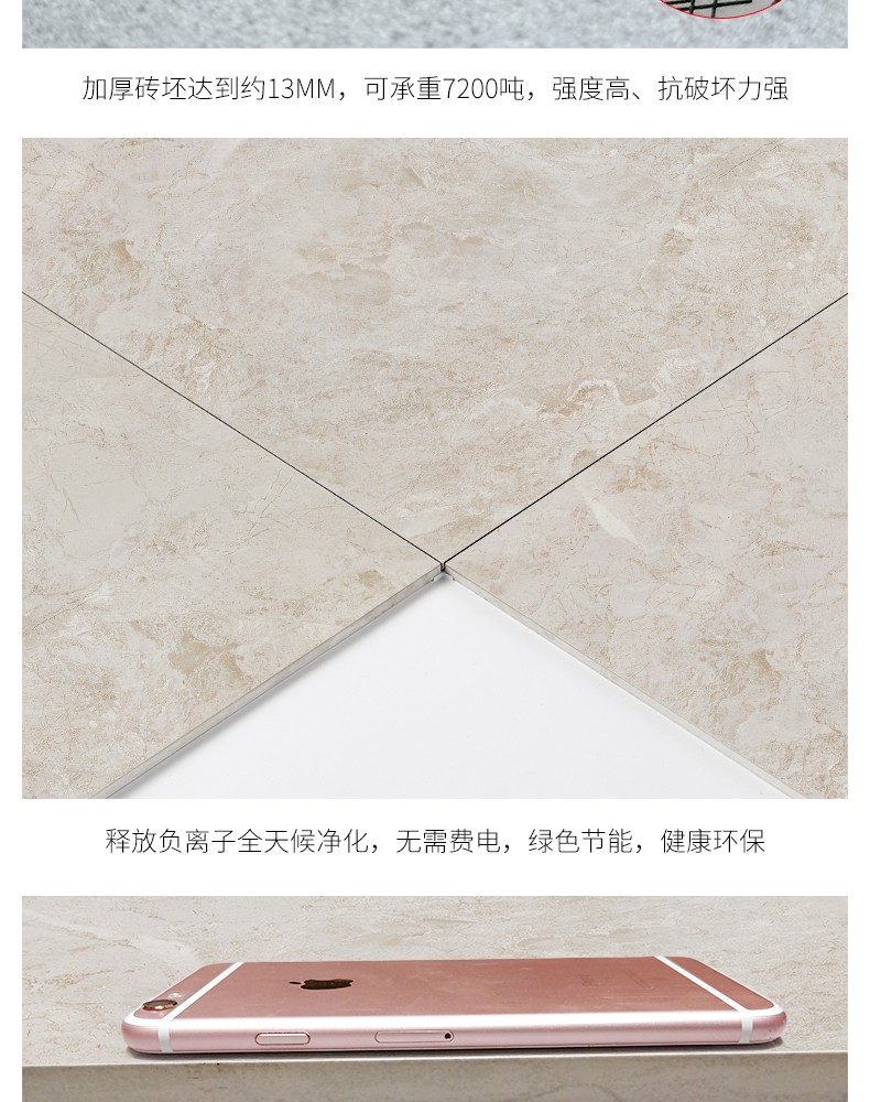 金曼古負離子瓷磚,能持續(xù)產生負離子,提高居室內空氣負離子濃度,改善室內空氣質量,提升人體健康水平。負離子被稱為空氣維生素,負離子瓷磚創(chuàng)造安全健康的空間環(huán)境。工程用磚全拋釉地磚、通體大理石瓷磚、金剛石地磚等支持加工定做家裝瓷磚批發(fā)。