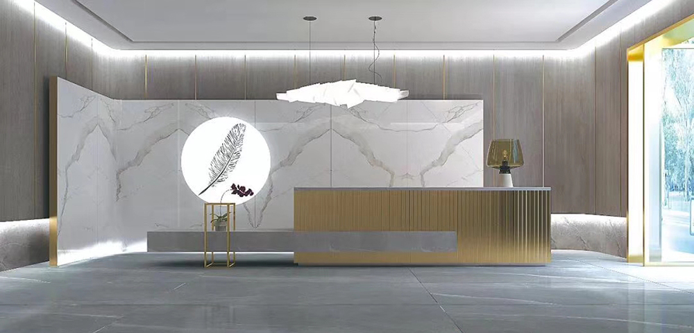 大規格瓷磚(5-JH241211)-工程瓷磚 金曼古大規格瓷磚引進世界最先進的超大型壓機自動壓制而成,具有超大規格,超高硬度,超高致密度,超長時間煅燒,超低吸水率,超高光澤度。其磚面紋理流暢自然,效果逼真,適用于大型工程外墻干掛和酒店、商場、各辦公樓大堂等地面裝修