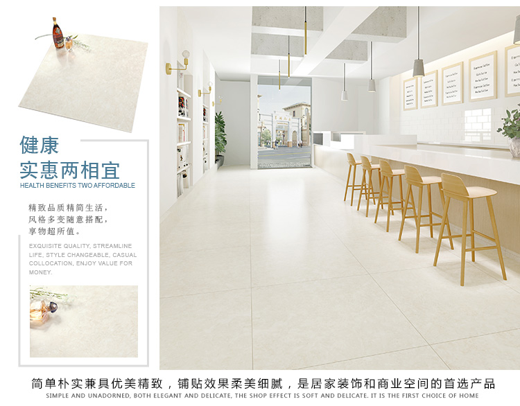 柔光瓷磚是磚面反射介于強(qiáng)光與弱光之間的一類(lèi)瓷磚,其結(jié)合亮光類(lèi)瓷磚的高調(diào)明艷裝飾和啞光類(lèi)瓷磚的低調(diào)內(nèi)斂搭配效果,通過(guò)動(dòng)態(tài)柔光蠟拋技術(shù),降低產(chǎn)品反光率,從而達(dá)到人體舒適的視覺(jué)感受以及無(wú)光污染的空間裝飾效果。優(yōu)點(diǎn):1.視覺(jué)舒適,無(wú)光污染 2.堅(jiān)固耐磨,不易刮花.