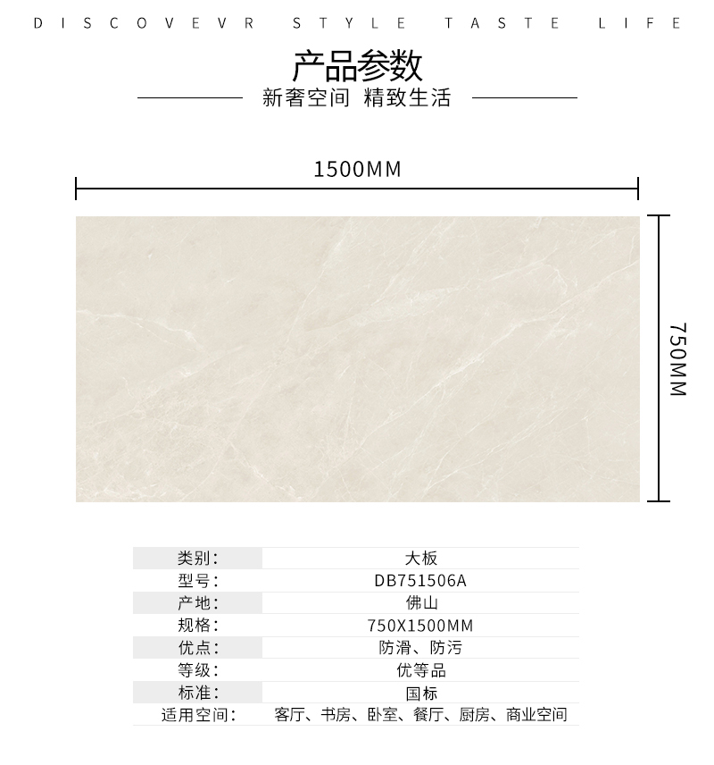 大規(guī)格瓷磚(DB751506A)-工程瓷磚 金曼古大規(guī)格瓷磚引進世界最先進的超大型壓機自動壓制而成,具有超大規(guī)格,超高硬度,超高致密度,超長時間煅燒,超低吸水率,超高光澤度。其磚面紋理流暢自然,效果逼真,適用于大型工程外墻干掛和酒店、商場、各辦公樓大堂等地面裝修